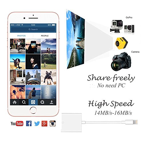 ✔ No NEED APP---Don’t need any driver or App, easily connect the SD card adapter to your iphone/ipad, please wait for about 5-10seconds,it will read photo and video automatically, download then view them on the gorgeous display and share them with family and friends on your social network freely.