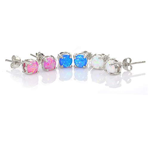 This set features pink, blue and white 4mm round prong set created opal stud earrings. The earrings are secured with a post and friction back and are crafted of polished sterling silver.Feature