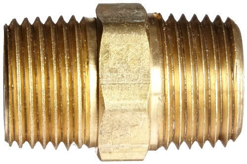 Anderson Metals 56122 Brass Pipe Fitting, Hex Nipple, 1/2" x 1/2" NPT Male Pipe