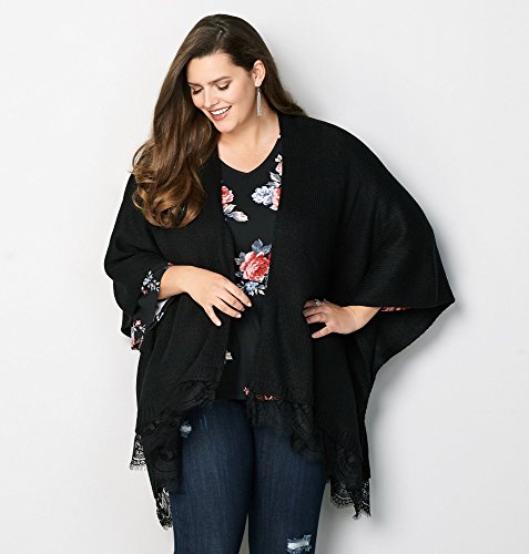 Studio : Avenue Publisher : Avenue Binding : Apparel Product Description This warm ruana topper will keep you cozy while the lace trims adds a touch of elegance. Plus size ruana. Lace trim. Body: Acrylic. Lace: Polyamide. Hand wash. Imported. Approx. 36 inches long including trim. 0