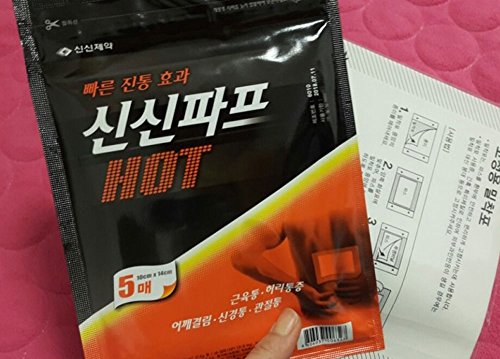 -. Feature : Hot Patch 1Pack(5pcs) X 1 / Relieving Muscular Pain, Joint Pain, Bruise, Sprain, Arthralgia, Shoulder Pain / Hot type : Pain relief by Hotness & Counter irritation effect on the Pain areas by Vanillyl Nonylamide. / This Pain relief patch has been our Representative item for decades. (We enjoy 95% of Market share in Korea)