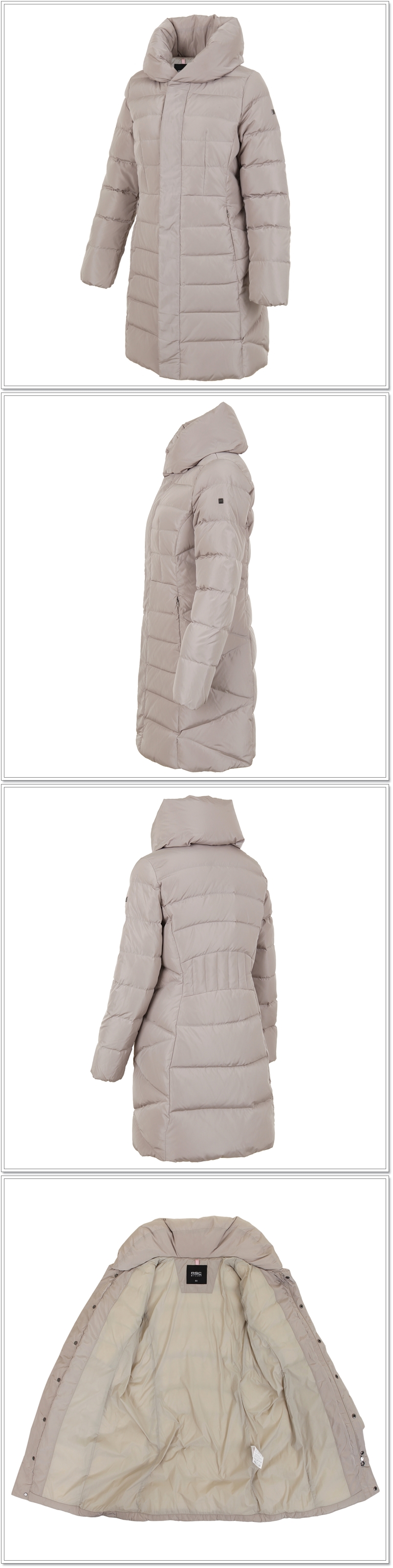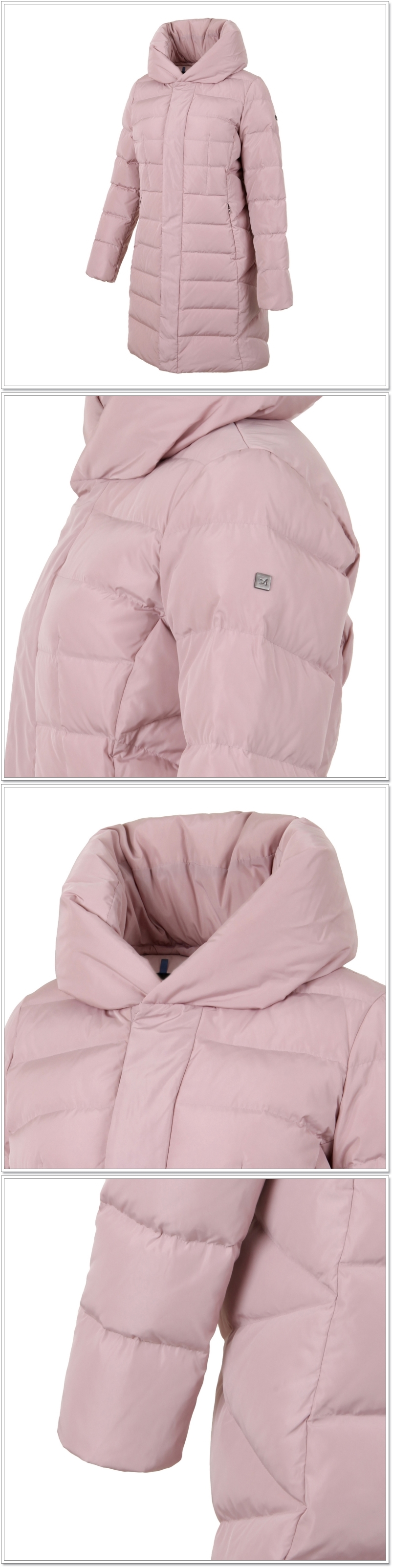 다운이 들어간 넓고 풍성한 애리 변형 스타일의 넥부분이 포인트