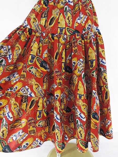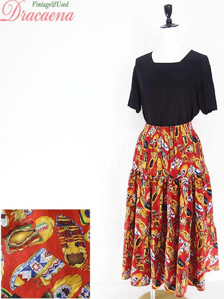 Ladies ブランド- カラー赤・黄色 メール便不可 コンディション★★★ 素材コットンだと思われます 表記サイズ記載なし 実寸サイズ 着丈 80 cm ウエスト 58cm 〜 96cm (23インチ〜38インチ) ※ウエスト・ヒップ以外は平置き採寸【code】#c