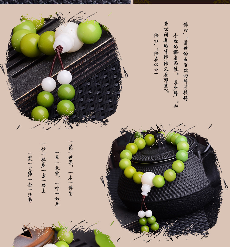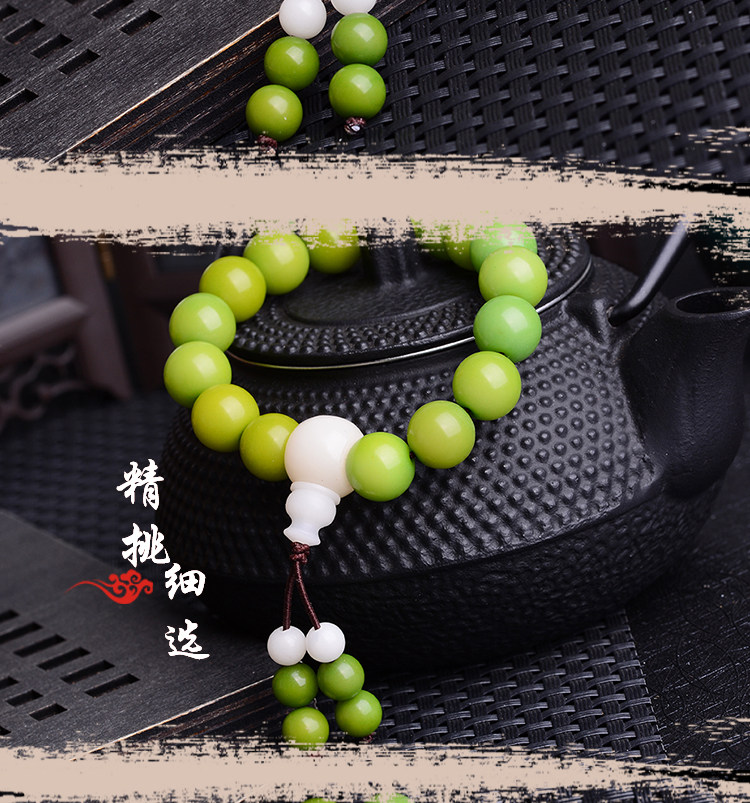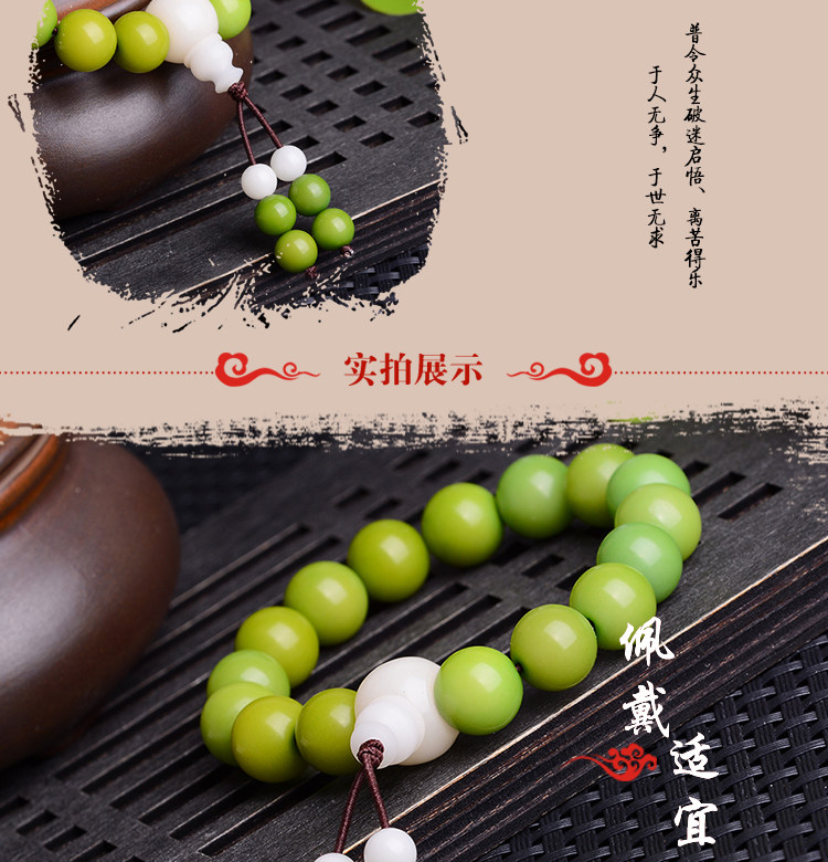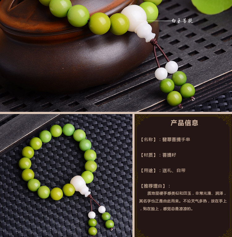 翡翠菩提手串佛珠单圈民族风绿菩提子佛珠手串手链男女饰品