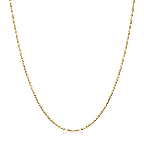 -. Binding : Jewelry -. Brand : Amberta -. Department : womens -. Feature : PREMIUM JEWELRY - Crafted from 925 sterling silver and covered in 18k gold tone overlay. Sturdy, durable spring clasp. Tight closure to reduce the chance of catching on fabrics or hair. / QUALITY ASSURED - Designed to last a lifetime. Made in Europe. Gold encrusted for protection against tarnish. Stamped .925 for authenticity and quality approved. / HYPOALLERGENIC - Amberta silver is nickel free, nontoxic and corrosion resistant. You won't get any irritation or skin rashes. / DELICATE DESIGN - Very lightweight and comforatble to wear. Chain Width: 1 mm. Metal Weight: 4.32 g. Chain Length: 24 in/60cm. / JEWELRY CARE GUIDE - Comes with a free guide on how to keep, store and clean your silver jewelry. -. Label : Amberta -. Manufacturer : Amberta -. Model : BIA-GP-CHAIN-011-050 -. MPN : BIA-GP-CHAIN-011-050 -. PartNumber : BIA-GP-CHAIN-011-050 -. ProductGroup : Jewelry -. ProductTypeName : FASHIONNECKLACEBRACELETANKLET -. Publisher : Amberta -. Studio : Amberta -. Title : 18K Gold Plated on 925 Sterling Silver 1 mm Cardano Snake Chain Necklace 16" 18" 20" 22" 24" in