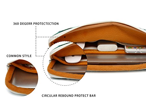 Canvaslife 360° protective system give your laptop best protection. Circular rebound material around the laptop bag,keep your laptop safe in any angle.Can also be fixed to the pull rod box above The design of front pocket can hold pen, phone, glasses,mouse, power cord etc. Canvaslife laptop sleeve is made of special canvas make Waterproof shockproof you unquie. High quality zipper puller and "u" zipper design is easycto put the laptop into the sleeve. Dimension: 350mm(L)x235mm(W)x25mm(H) fit most 13.3 inch laptop and macbook air 13 and macbook pro 13(our laptop sleeve is big enough to hold macbook 13 with hard case)Feature