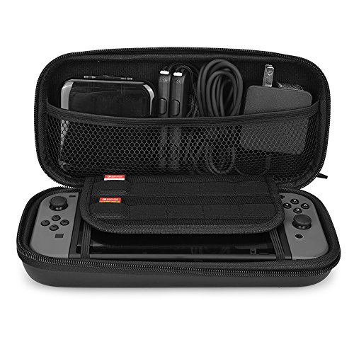 -. Feature : STORE - Fits the Nintendo Switch tablet, 2 x Joy-Con controllers, and features a separate inner pocket for cables, games, and other smaller but essential accessories / PROTECTS - Protects Nintendo Switch from accidental bumps, scratches, and drops while in case / HOLDS 8 GAMES CARD - Convenient to store and use / SCREEN PROTECTOR - 2 pack screen protector help to protect screen from scratchs / 2 GAME CARD CASES - One transparent white and one transparent grey, each card case hold 4 Nintendo Switch game cards offering dust free protection