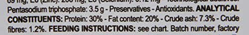 原材料:米、家禽*ミート、植物性分離タンパク**、小麦、動物性脂肪、加水分解動物性タンパク、ビートパルプ、ポークプロテイン、大豆油、魚油、フラクトオリゴ糖、加水分解酵母(マンナンオリゴ糖源)、加水分解甲殻類(グルコサミン源)、マリーゴールド抽出物(ルテイン源)、加水分解軟骨(コンドロイチン硫酸源)、アミノ酸類(L-リジン、タウリン、L-カルニチン)ポリリン酸ナトリウム、ゼオライト、ミネラル類(K、Ca、Cl、P、Na、Zn、Mn、Fe、Cu、I、Se)、ビタミン類(A、D3、イノシトール、コリン、E、ナイアシン、C、パントテン酸カルシウム、B6、B1、B2、葉酸、ビオチン、B12)、保存料(ソルビン酸カリウム)、酸化防止剤(BHA、没食子酸プロピル) *鶏、七面鳥 **超高消化性タンパク 主原料はすべて天然由来原料を使用しており、着色料を使用していない為、粒の色調等にばらつきがある場合がございますが、品質に問題はありませんので、安心してご利用ください。