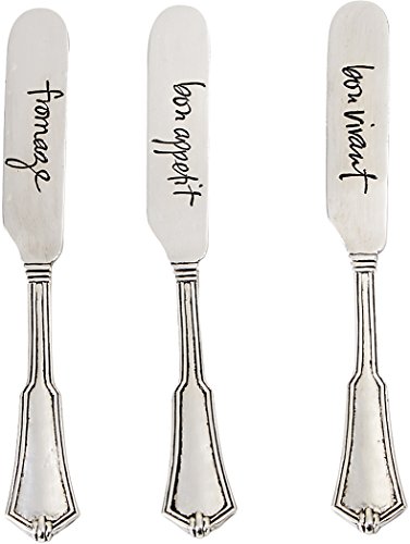 Studio : Mud Pie Publisher : Mud Pie Product Description This charming vintage style spreader is made of silverplate and the blades feature the words fromage, bon appetit, or bon vivant. It works well for spreading butter, cheese, or other spreads. Made by Mud Pie, this spreader is sold individually and measures 5.5" long. Each comes nicely packaged on corrugate. Please choose from the three styles shown. 0