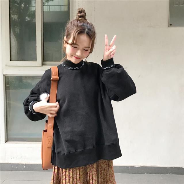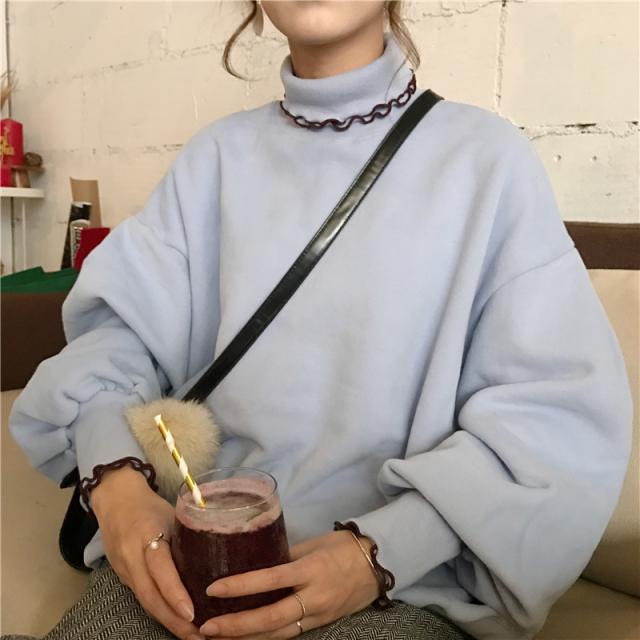 ハイネックと袖フリルがコーデのアクセントに◎