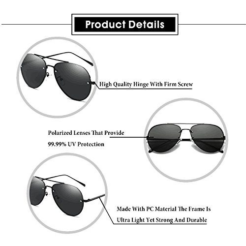 VANTEN Unisex Classic Polarized Aviator Sunglasses Sports Sun Glasses Uv, Black