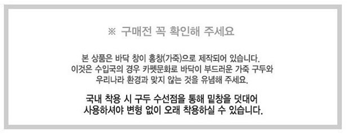 | 체크 포인트 | * 해외기준 사이즈로 동양인의 표준사이즈(발볼,발길이)와 개인차가 있을 수 있습니다. * 빈티지 스타일로 나온 제품의 경우 해짐등 디테일 처리는 본래의 디자인입니다 |