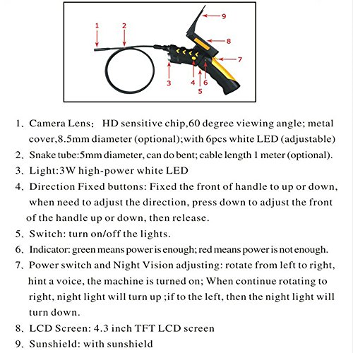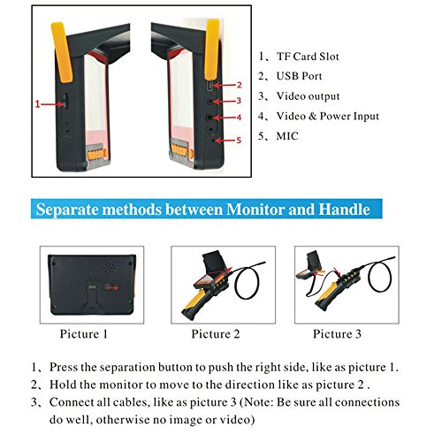 -. Title : MOUNTAINONE 4.3" LCD DVR Receiver Video Digital Inspection Camera 3M Cable 8.2MM Borescope Endoscope Zoom Rotate SY9500A-3M
