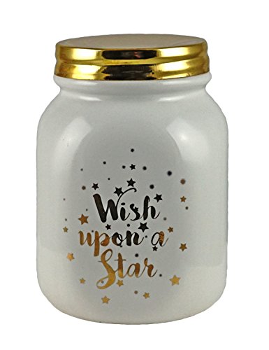- Features a white jar that says: "Wish Upon a Star" in gold-colored plated letters