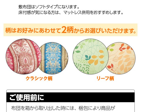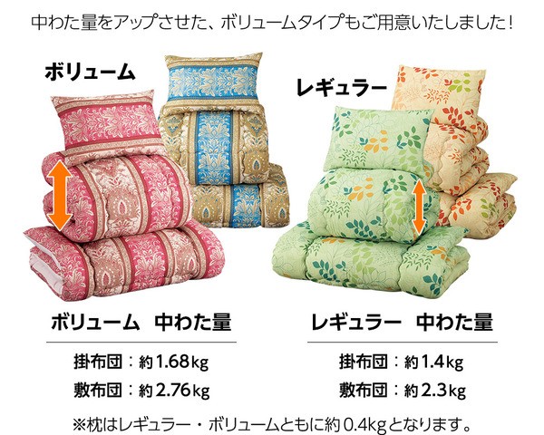 洗える抗菌防臭機能付。柄もボリュームも選べる!布団セットです。