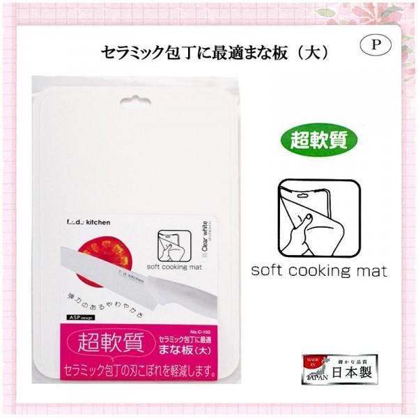 fk094igrjsセラミック包丁の刃こぼれを軽減します超軟質タイプ サイズ (約)縦390×横260×厚さ2mm 個装サイズ:27×1×42cm 重量 個装重量:220g 素材・材質 エラストマー(耐熱温度70度)・ポリプロピレン(耐熱温度70度) 製造国 日本 セラミック包丁に最適なまな板 セラミック包丁の刃こぼれを軽減します超軟質タイプ