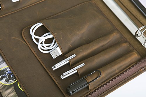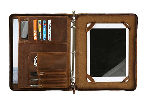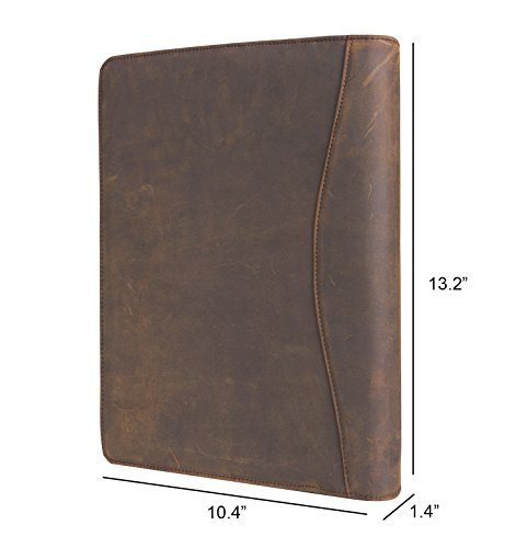 -. Feature : PREMIUM GENUINE LEATHER -- This Portfolio is made from finest quality crazy house leather. Over time, full grain leather will look better as it forms a patina from daily usage. MEASUREMEN -- 14.37 x 10.24 x 1.8 inches. / VINTAGE TABLET CASE -- Sized for iPad Pro 9.7,iPad Pro 12.9 inch, iPad pro 10.5, iPad 2/3/4, iPad Air, iPad mini 1/2/3/4, Micro Surface Pro 3/4/5. Can be P.R.Inted your Logo/Name/Blessing Phrases on the case, please select "Custom Design" to design your unique portfolio. / GREAT ORGANIZED -- Built in 3-Ring Binder, pen loops, business card holder, wire or phone holder and expandable document pocket for letter size notepad & document. With all your documents and gadgets in this padfolio, it's easier than ever to stay organized and up-to-date with meetings, interviews and business work. / 3 RING BINDER -- This portfolio features a flexible 3 ring binder,can hold 0.7 inch Loose-Leaf Refills. You can design your personalized Planner/Notebook with daily/weekly/monthly planner refills. / CUSTOM ENGRAVED -- All of our portfolio is handmade, so we can make a unique & personalized portfolio for you. For example, engrave your name/your company's logo or slogan on the portfolio; Change the 3 ring binder to a 7 ring binder; you don't need 4 card slots, 2 card slots is enough. The phone pocket is too small, you want a bigger. Just let us know your idea, we will make it for you. Click 'Add to Cart' to order the best business portfolio right away.