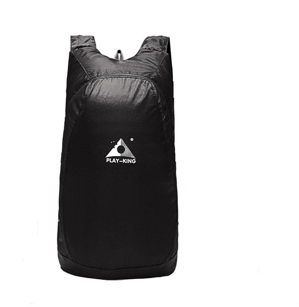 A collapsible backpack that can be folded and stored in the inner pocket.