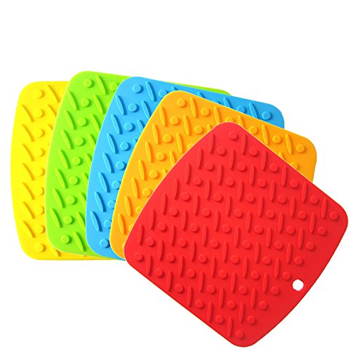 - 5 Silicone pads - Each set comes with 5pcs pot holder, 1pc for each color. Perfect display for home, wedding, party, and banquet,Easy to clean.