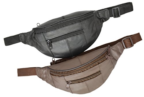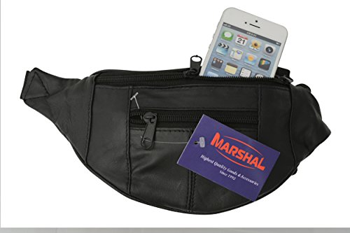 Marshal Genuine Leather Slim Waist Pack Pouch with Zippered Pockets
