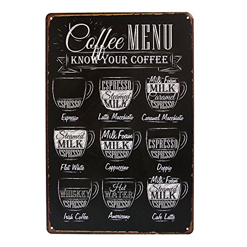 T-Ray CAFE MENU KNOW YOUR COFFEE TIN SIGN Old Wall Metal Painting ART Decor