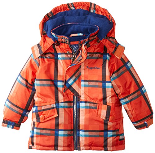 Rugged Bear Babys All Over Plaid Puffer, Orange, 12 Months
