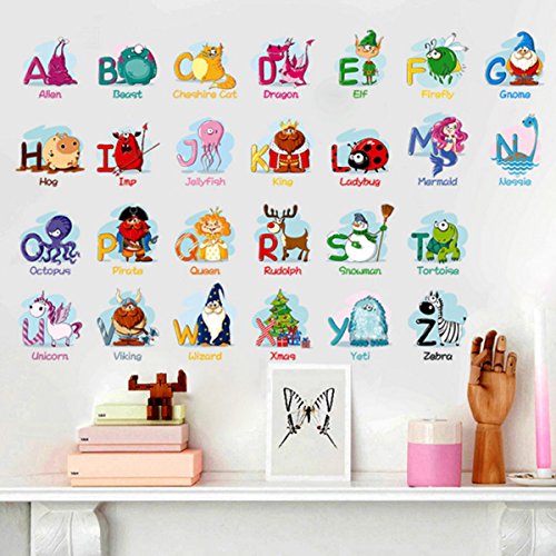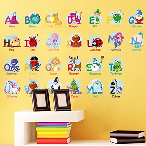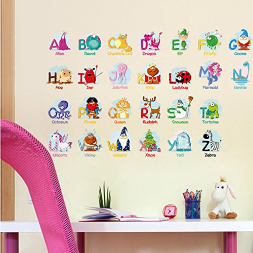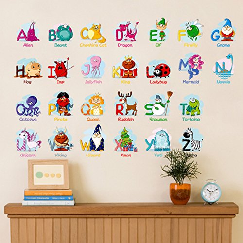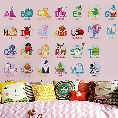 Animal Alphabet Wall Decals, Baby and Toddler Wall Decor, Fun ABC Wall Stickers Decals Peel and Stick for Kids Nursery Bedroom Living Room