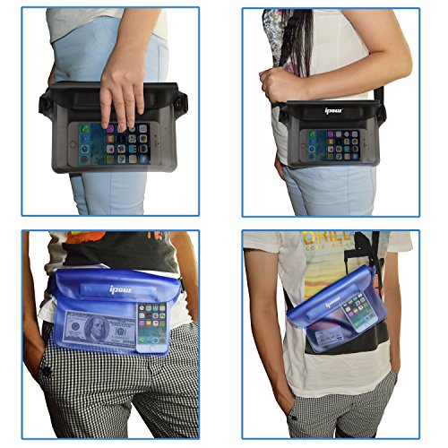 [2 Pack] Ipow Waterproof Pouch Bag Case Waist Strap for Beach, Swim, Boating, Kayaking, Hiking, Etc - Protect Iphone,Cellphone,Camera,Cash,Mp3,Passport, Document From Water, Sand, Snow, Dust and Dirt