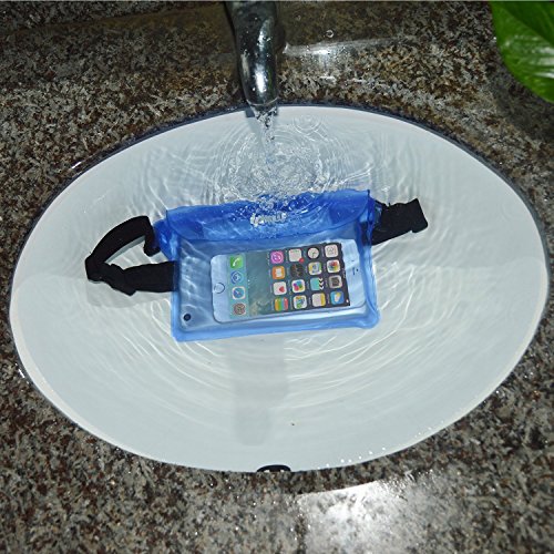 Adjustable comfortable waist belt - adjustable carrying straps means you can wear the waterproof pouch around your waist (fits waist sizes: 30.5 - 44 inches), neck or shoudler in water parks, pool, beach, kayaking, jogging, sauna, white water rafting, dive gear, island hopping, skiing, snowboarding, hiking and all of your life's adventures which involves water, sand, dirt, snow and dust;