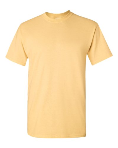 Studio : Gildan Publisher : Gildan Binding : Apparel Product Description Gildan Adult 5.3 oz. preshrunk jersey. Lighter weight and softer hand. Seamless double needle collar. Taped neck and shoulders. Quarter-turned body. Heather colors are a poly/cotton blend to achieve coloration. 0