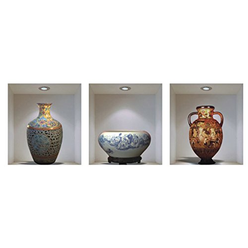 uxcell Retro Antique Vase Pattern Vinyl PVC Home Living Room Removable 3D Magic DIY Wall Sticker Decal Decor Art,Set of 3
