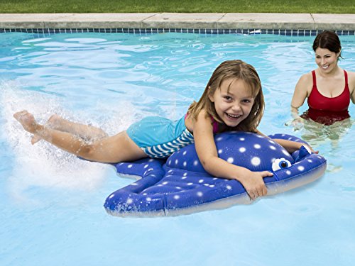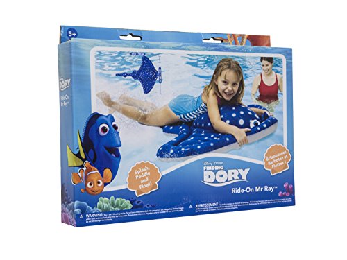 -. Feature : Sit, Lay and play on the Mr. Ray ride-on inflatable pool float for kids / Inflatable pool float shaped like the beloved Mr. Ray teacher from Disney's Finding Nemo and Finding Dory movies / Constructed of heavy-duty materials for long-lasting play / Pool float measures 53in. X 42in / Recommended for kids 5+