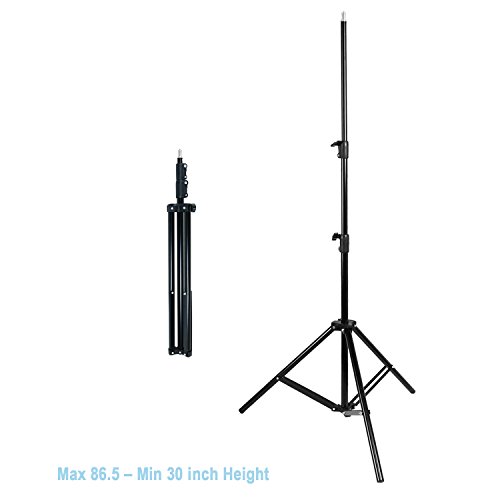 Photography 86" Studio Quality High Output Light Stand ? Solid Safety 3 Legs Stages ? Light Weight: Easy to Move ? Indutrial Standard Mounting Stud ? Solid Locking System for Light Safety ? Height adjustable Min 53" - Max 86.5"