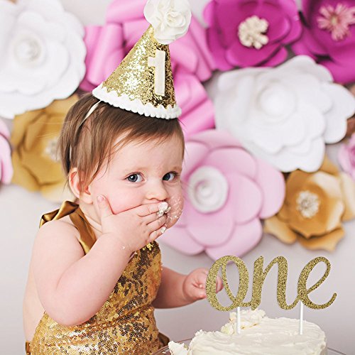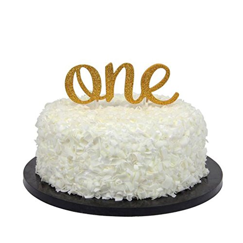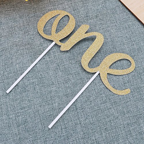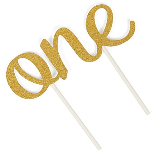 Handmade 1st First Birthday One Cake Topper Decoration for Anniversary Birthday Wedding Party Event Gold Glitter (Gold, One)