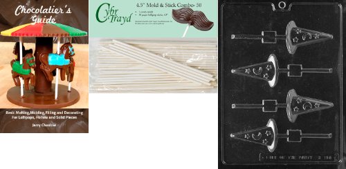 Cybrtrayd 'Witch's Hat Lolly' Halloween Chocolate Candy Mold with 50 4.5-Inch Lollipop Sticks and Chocolatier's Guide