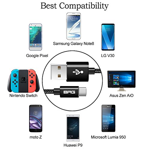 Studio : BRG Publisher : BRG Binding : Electronics Product Description BRG New Nylon Braided USB C to USB A Cable Color: Black 3 Pack(1 ft 4 ft 6 ft) Material: Sturdy Nylon Braided/Premium Aluminum Connectors Compatibility Devices: Samsung Galaxy Note8 Samsung Galaxy S8/S8 Plus LG G6, G5, V30, V20 Google Pixel, Google Chromebook Pixel, Nexus 5X, Nexus 6P Huawei P9/P9 Plus, Mate 9 Microsoft Lumia 950/950 XL moto Z, Z2 play Nintendo Switch OnePlus 2,3,3T HTC 10 Nokia N1 Asus Zen AiO Lenovo Zuk Z1 2015 Apple new MacBook with 12" Retina Display other USB Type-C device