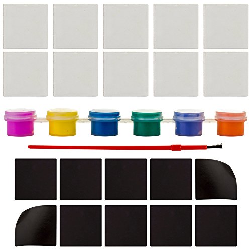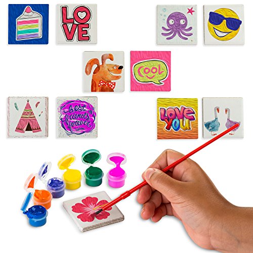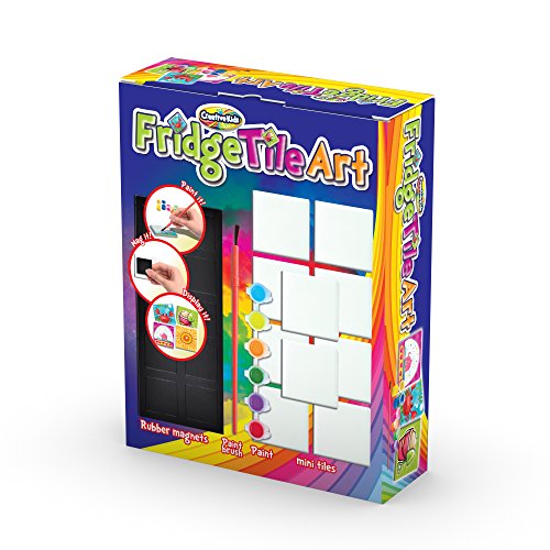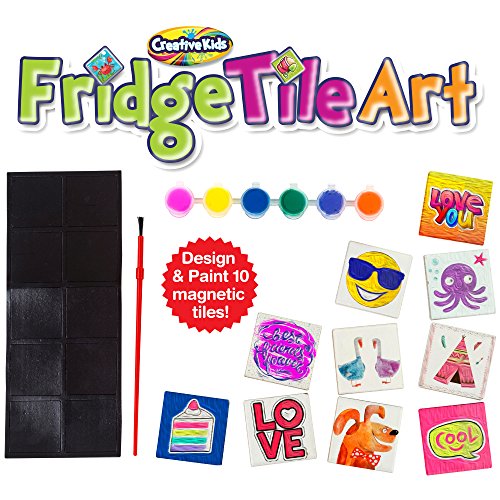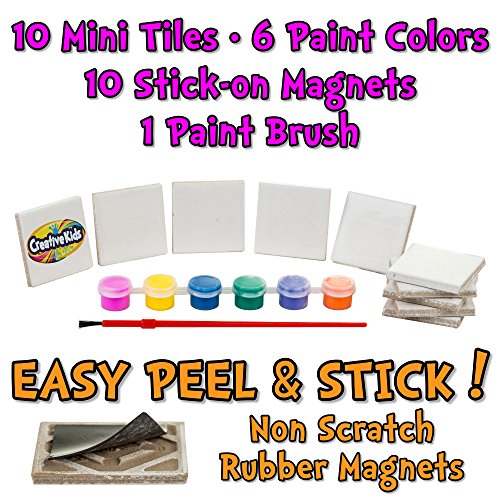Creative Kids Fridge Tile Art – Make Your Own Magnetic Tile Art Set for Kids – Includes 10 Mini Tiles w/ Rubber Magnets 6 Colorful Paint Pots 1 Paint Brush & Detailed Instructions – Age 6+