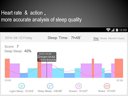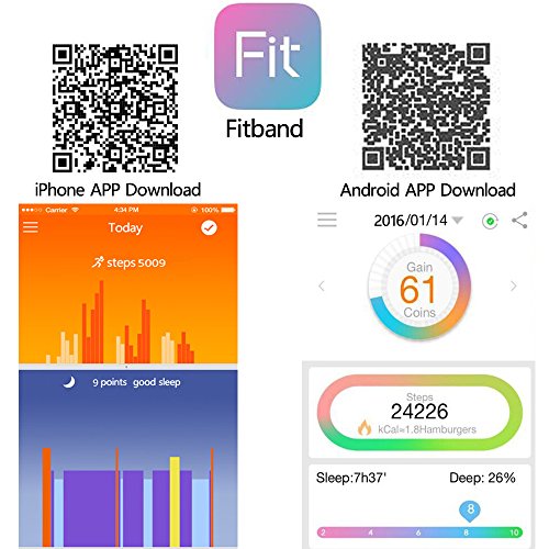 -. Feature : Record the daily exercise, Tracks steps, distance, calories burn and so on, make you exercise is more efficiently. / Multidimensional sleep monitoring, accurate analysis of the sleeping quality , make you have a better understanding of the effects of sleep. / Get continuous,automatic to simplified heart rate data on your wrist. Sedentary remind/Call Reminder/Sleep Cycle alarm clock/and more warmly function bring the better experience. / Boasts up to 7 days battery life. Apply to iOS 8.0 and above version,Android4.4 and Bluetooth 4.0+ and above version for smart phone. / Notes:APP of the new revision,Please upgrade APP "Fitband" in time, more features will increase and keep the App with device have a better communication. When you meet problems, please contact us to get the technical support.