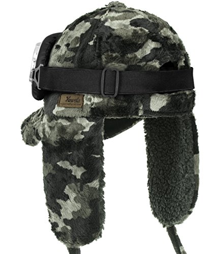 Binding : Apparel Product Description Howels Camo/Solid Velboa Baseball Cap Ear Flaps Military Adjustable Trucker Hat Style: camouflage pattern velboa faux fur ear flaps attached cute baseball cap Crown: low pile round crown and button on top Brim: pre-curved stiff brim casual trucker hat Trim/Embellishment: camouflage pattern soft vintage baseball cap. velcro closure ear flaps makes you feel warm. also you can choose black or silver goggle on the hat that helps to make military mood more. Inner band: approx. 57cm (7 1/8) / brim width: approx. 8cm (3") Material: 100% Polyester Wash Instruction: Do not wash, wipe with moist cloth Measurement: Medium Inner Band:57cm (7 1/8) Color Disclaimer: Due to monitor settings and monitor pixel definition, the color seen may be slightly different from the actual color.