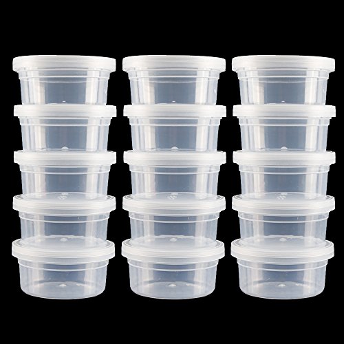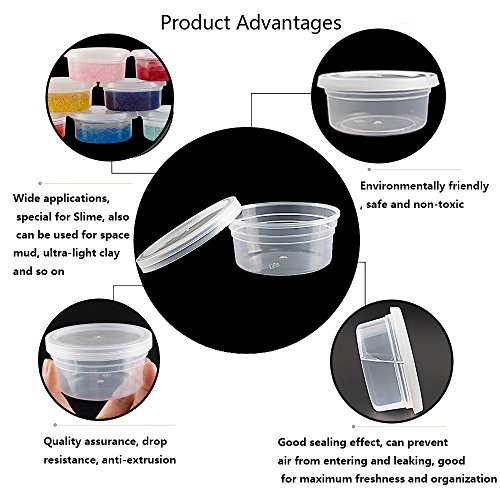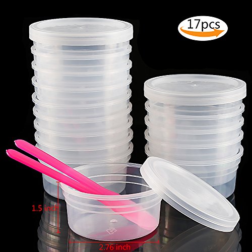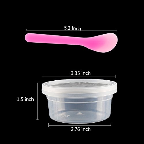 Quantity: package includes 15pcs clear slime containers with 16pcs corresponding fit lids, 2pcs slime mixing spoons, enough for you to use