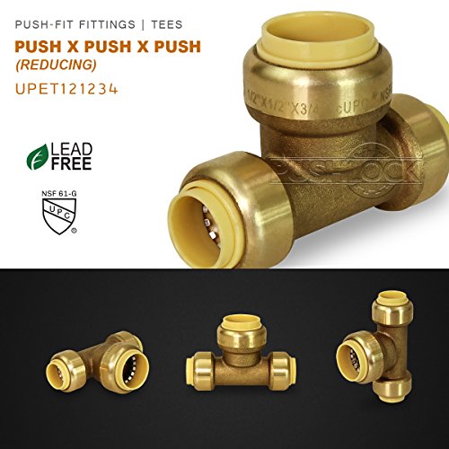 - 1/2 Inch x 1/2 Inch x 3/4 Inch Long Push Tees, Made with Lead Free DZR Forged Brass