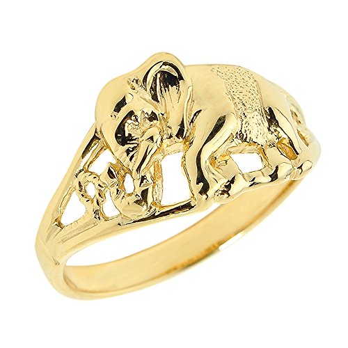 -. Binding : Jewelry -. Brand : Animal Kingdom -. Department : womens -. Feature : good luck charm elephant jewelry for women with a smooth dainty band / finely handcrafted with solid 14 karat yellow gold in impressive high polished finish / comes with free special gift packaging / made in the USA yet offered at factory direct jewelry P.R.Ice / ships directly from the manufacturer to the customers -. Label : Claddagh Gold -. Manufacturer : Claddagh Gold -. Model : QKE3009 -. MPN : QKE3009 -. PartNumber : QKE3009 -. ProductGroup : Jewelry -. ProductTypeName : FASHIONRING -. Publisher : Claddagh Gold -. Studio : Claddagh Gold -. Title : 14k Yellow Gold Open Design Indian Elephant Ring