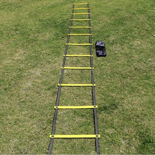 -. Feature : Adjustable flat plastic rungs for safety. Carry bag to keep it organized. / Durable nylon straps and high quality PP material, designed to last for years. / Suitable for athletic training, football, basketball, tennis, badminton, rugby ect. / It is also suitable for agility training of teenagers. / Folding design makes it suitable for indoor or outdoor.