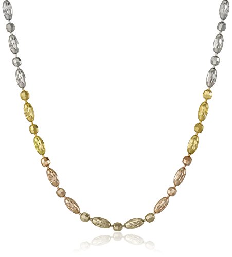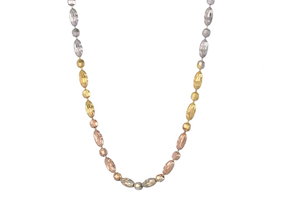 Sterling Silver Italian Tri-Color Diamond Cut Oval and Round Beads Mezzaluna Chain Necklace