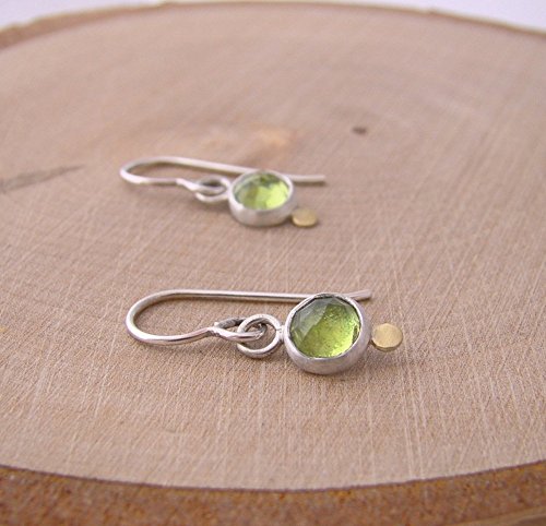 -. Title : 18 Karat and Sterling Silver Peridot Gold Dot Rose Cut Drop Earrings