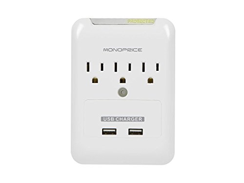 Monoprice 109195 3 Outlet Power Surge Protector Wall Tap with 2 USB Ports
