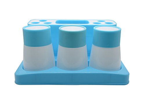 TOWOMO Toothpaste Toothbrush Holder With Three Cups Bathroom Organizer Storage Rack(Blue)