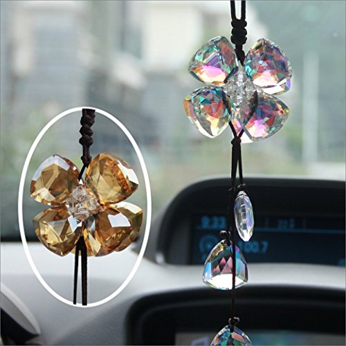 -. Title : Silence-shopping Crystal Four Leaf Clover Shape Car Hanging Decor Ornament Decoration Rearview Mirror Glass Peace Pendant (Colorful Translucent)