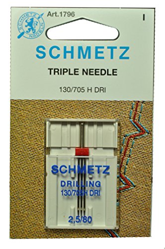 -. Binding : Kitchen -. Brand : Schmetz -. EAN : 0616469845191 -. Feature : Schmetz Sewing Machine Triple Needle SCHMETZ TRIPLE NEEDLE CARDED (1796) Description: Three Universal needles on crossbar attached to a single shaft. Stitch three rows at one time to furtherenhance your decorative machine capabilities. Thefirst number, with a decimal point on the package,indicates the distance between the needles. The secondnumber indicates the needles size. Size: 2.5 1796 / Sewing Machine Triple Needle -. Label : Schmetz -. Manufacturer : Schmetz -. ProductGroup : Home -. ProductTypeName : HOME -. Publisher : Schmetz -. Studio : Schmetz -. Title : Schmetz Sewing Machine Triple Needle -. UPC : 616469845191