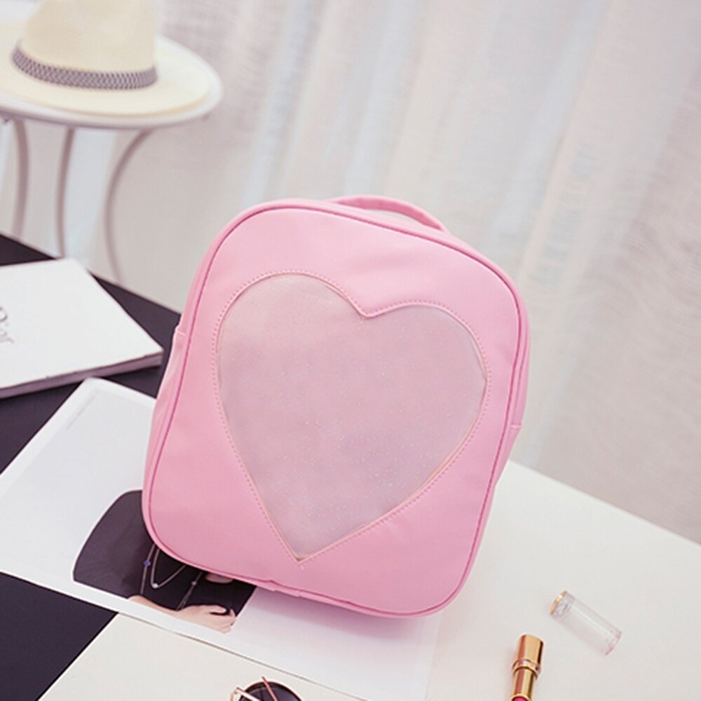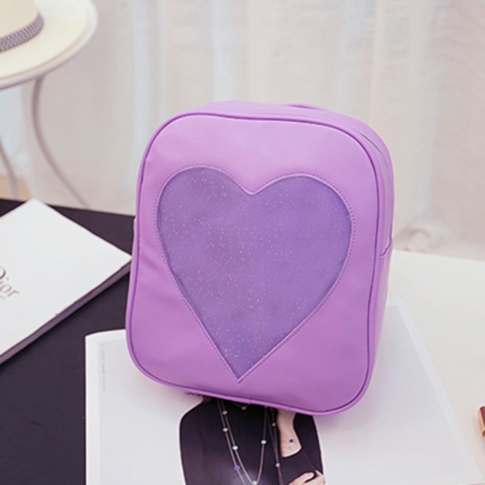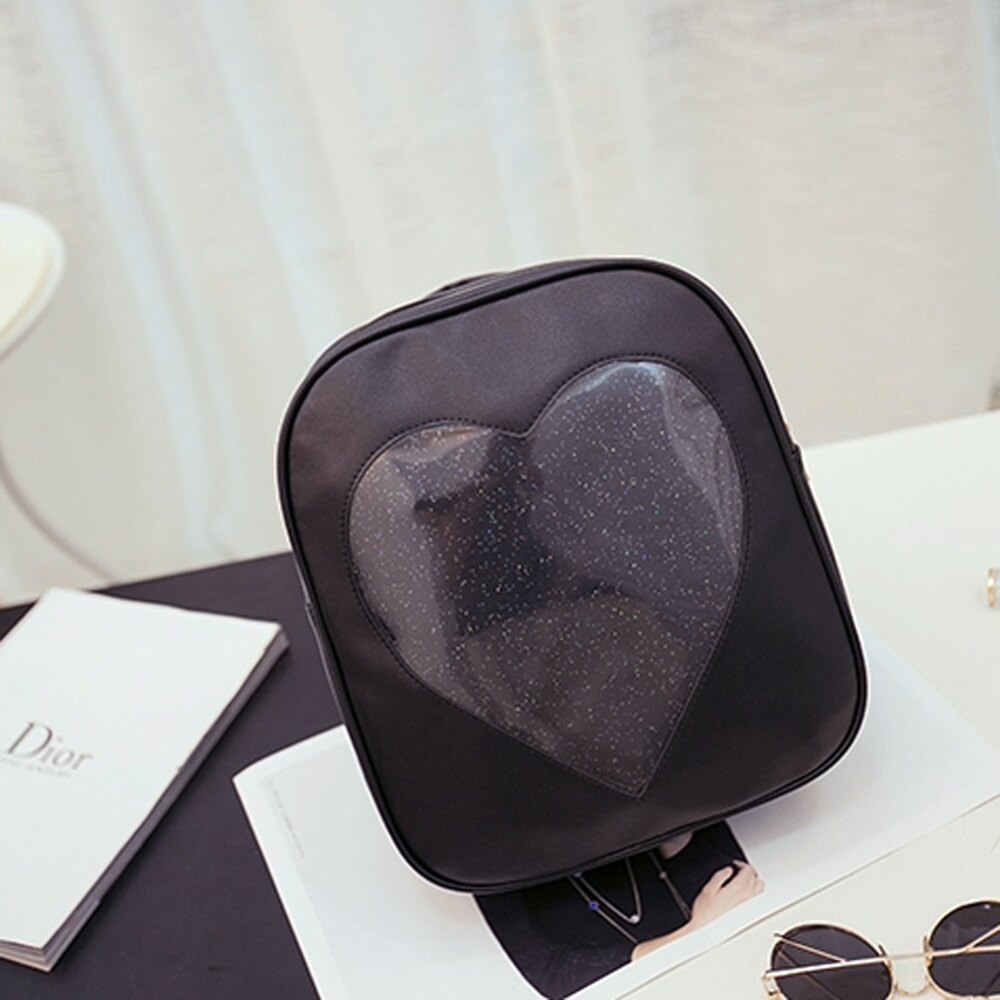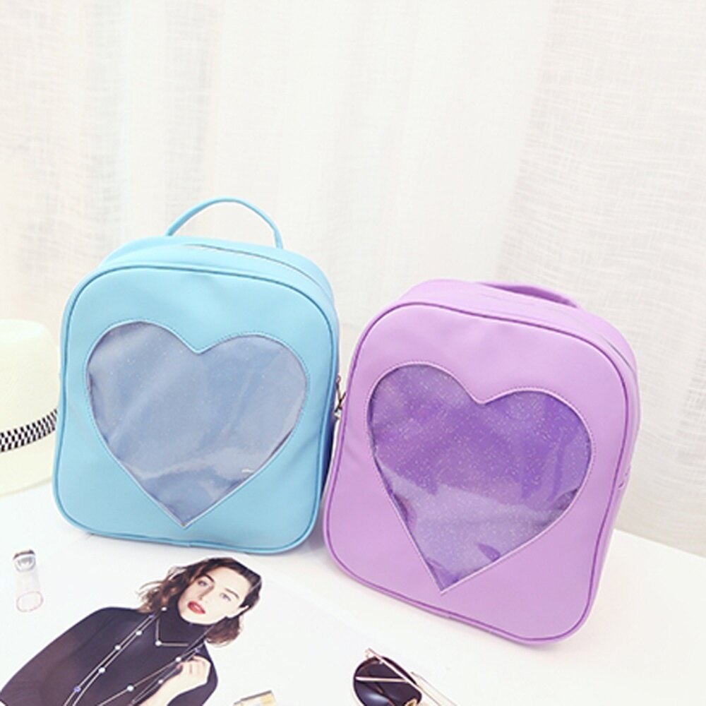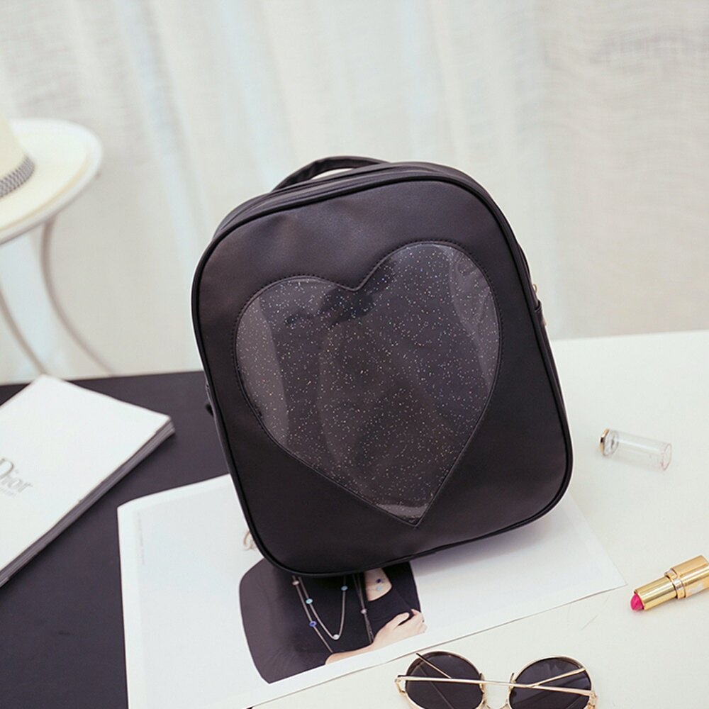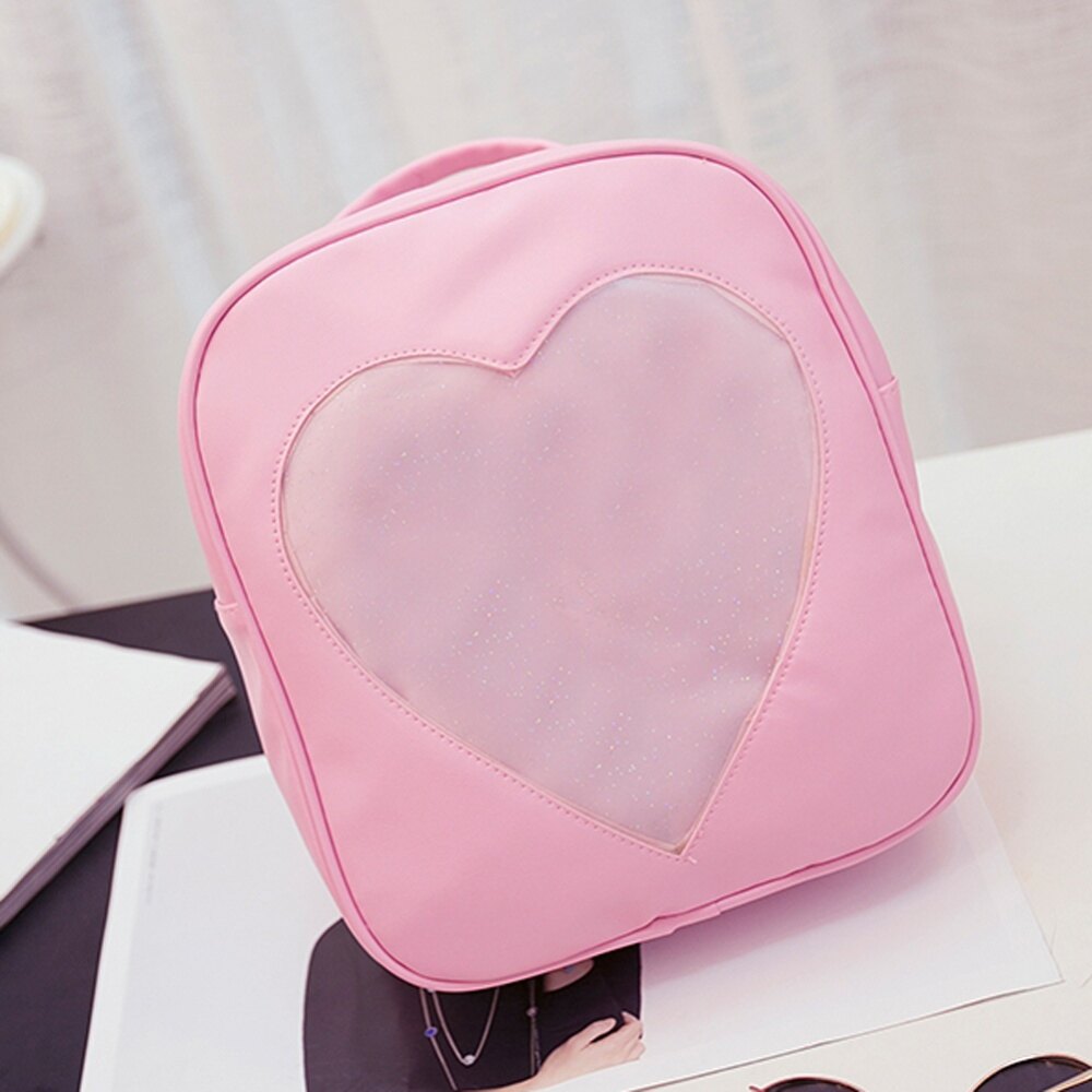 2017 New Women PU PVC Transparent Love Heart Shape Backpacks Girls School Bag Shoulder Bag